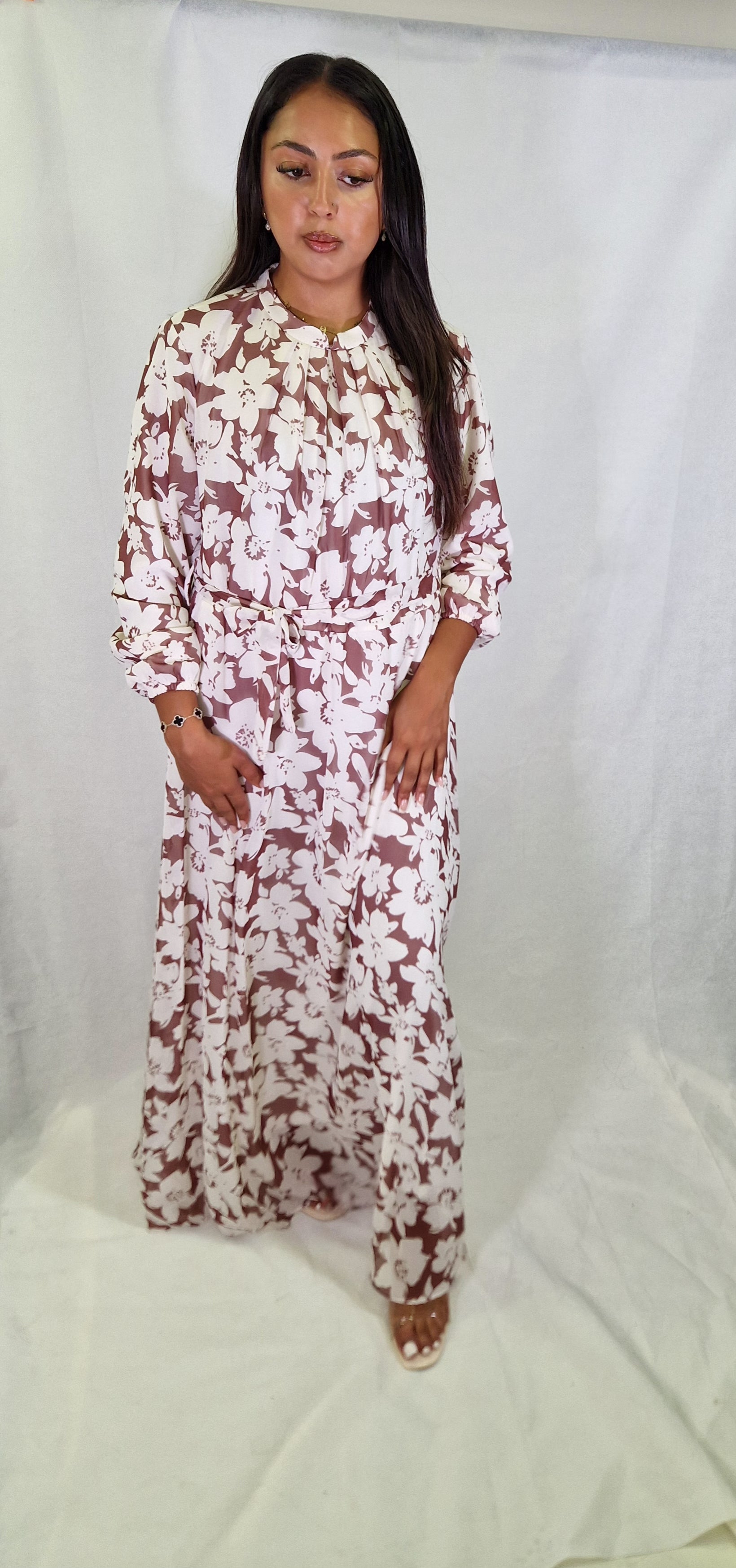 The Ezme Abaya features a fully lined floral design that adds elegance and comfort to your everyday wardrobe. Paired with a stylish belt, it enhances your silhouette for a graceful and polished look. Perfect for daily wear, this abaya combines modesty with a touch of sophistication.