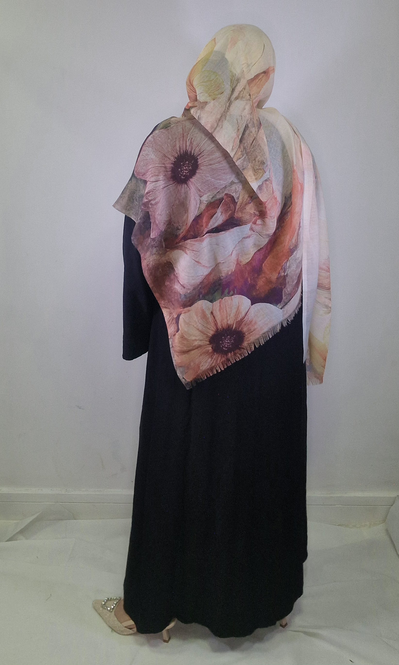 Elevate your style with our Floral Modal Hijab! This stunning design adds a touch of whimsy to any outfit. Made with breathable and airy material, it's perfect for all-day wear. Get ready to turn heads with this gorgeous floral print. (Hijab pun intended)