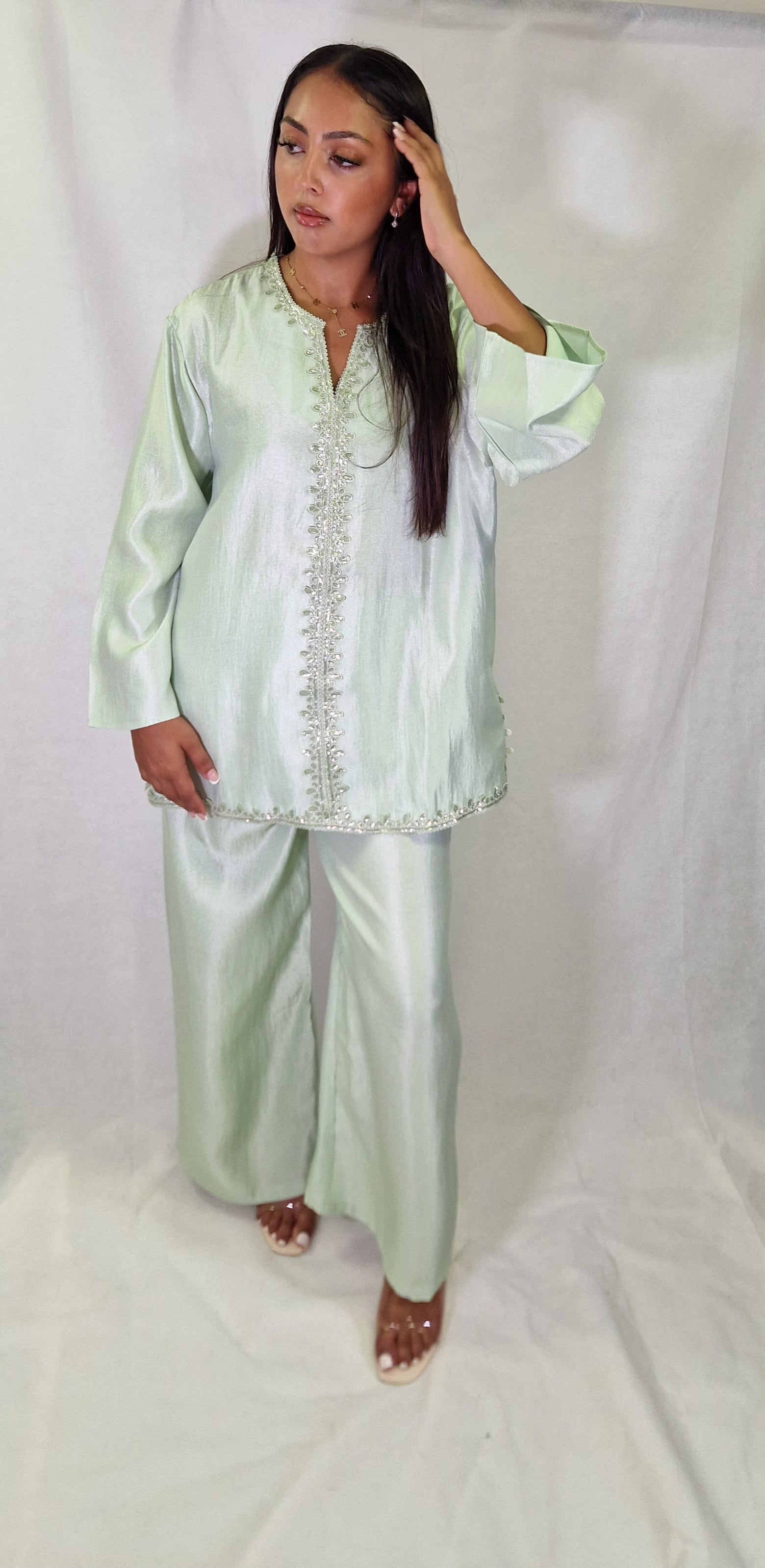 This Meher organza silk co-ord dazzles with delicate lace detailing, adding a touch of elegance to your special occasion. Light and graceful, it’s perfect for turning heads and feeling fabulous all day long. Embrace the charm and let your style shine!