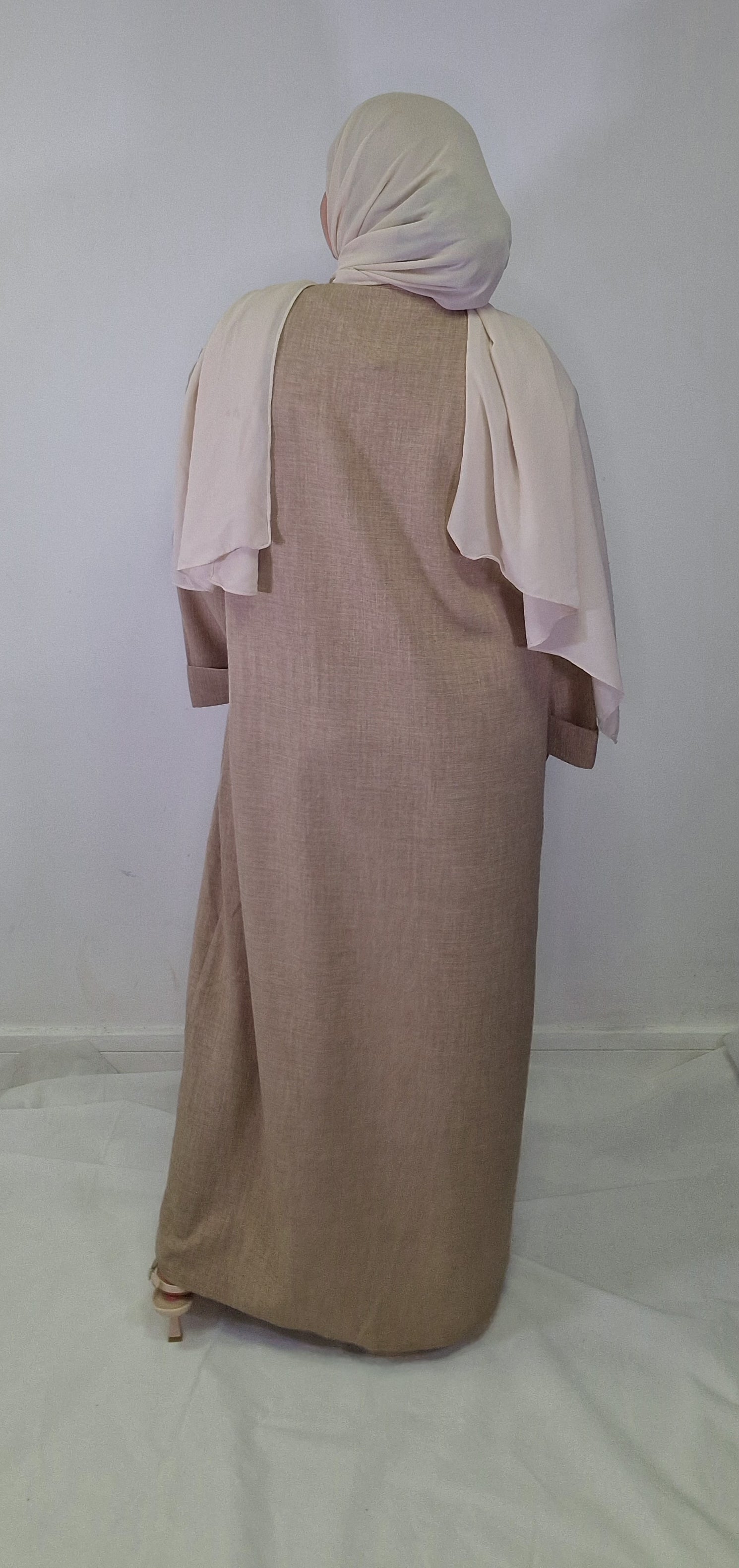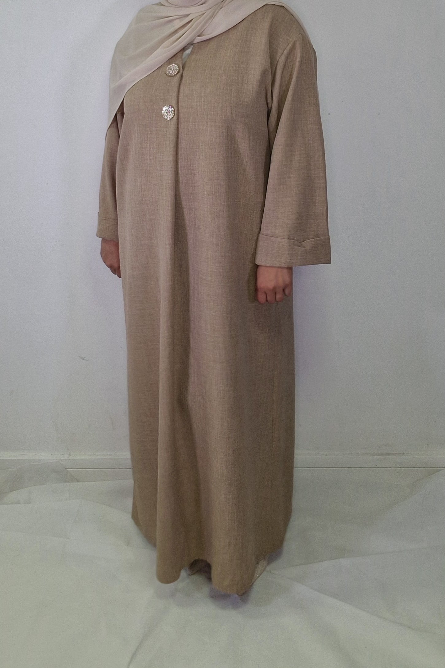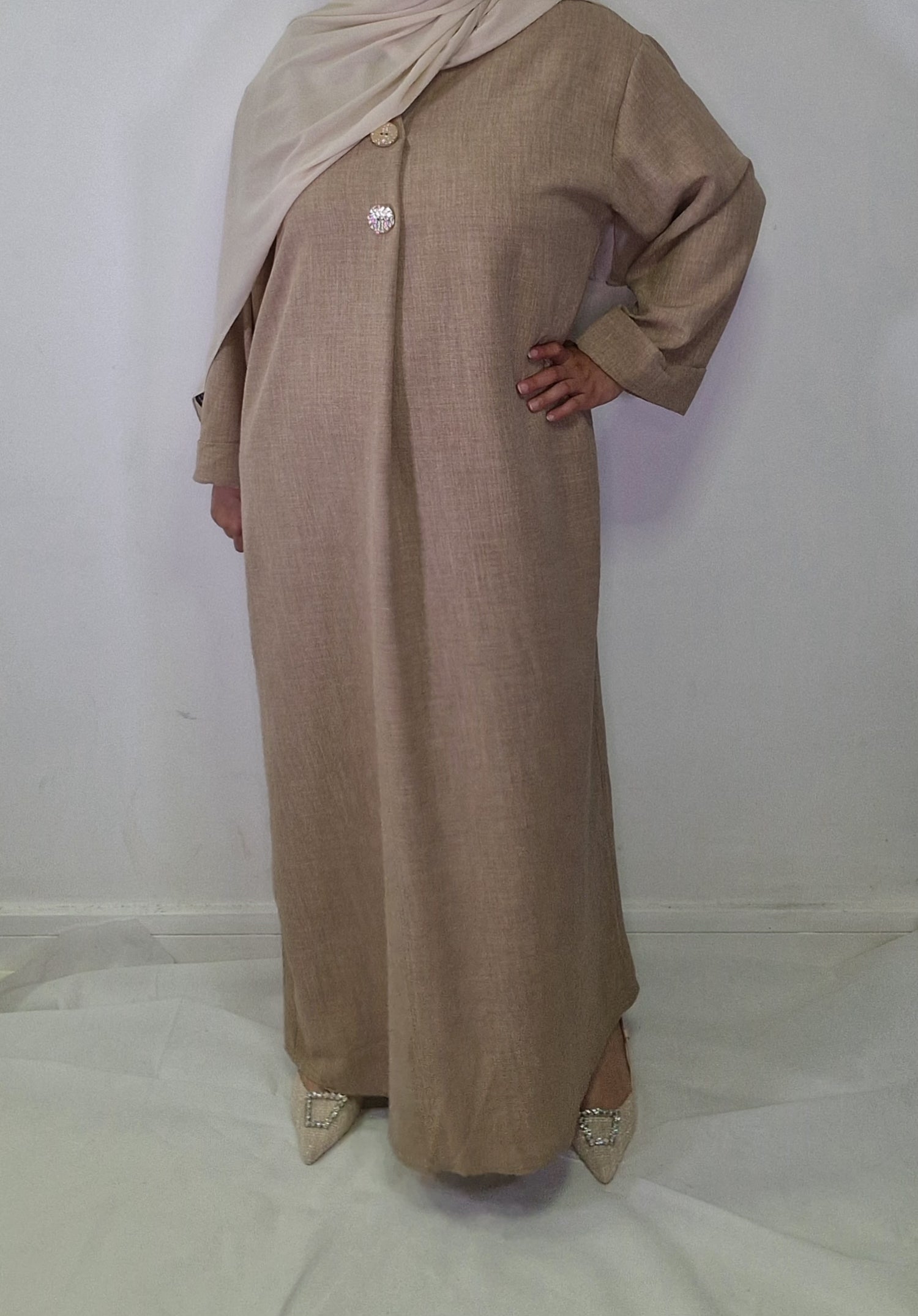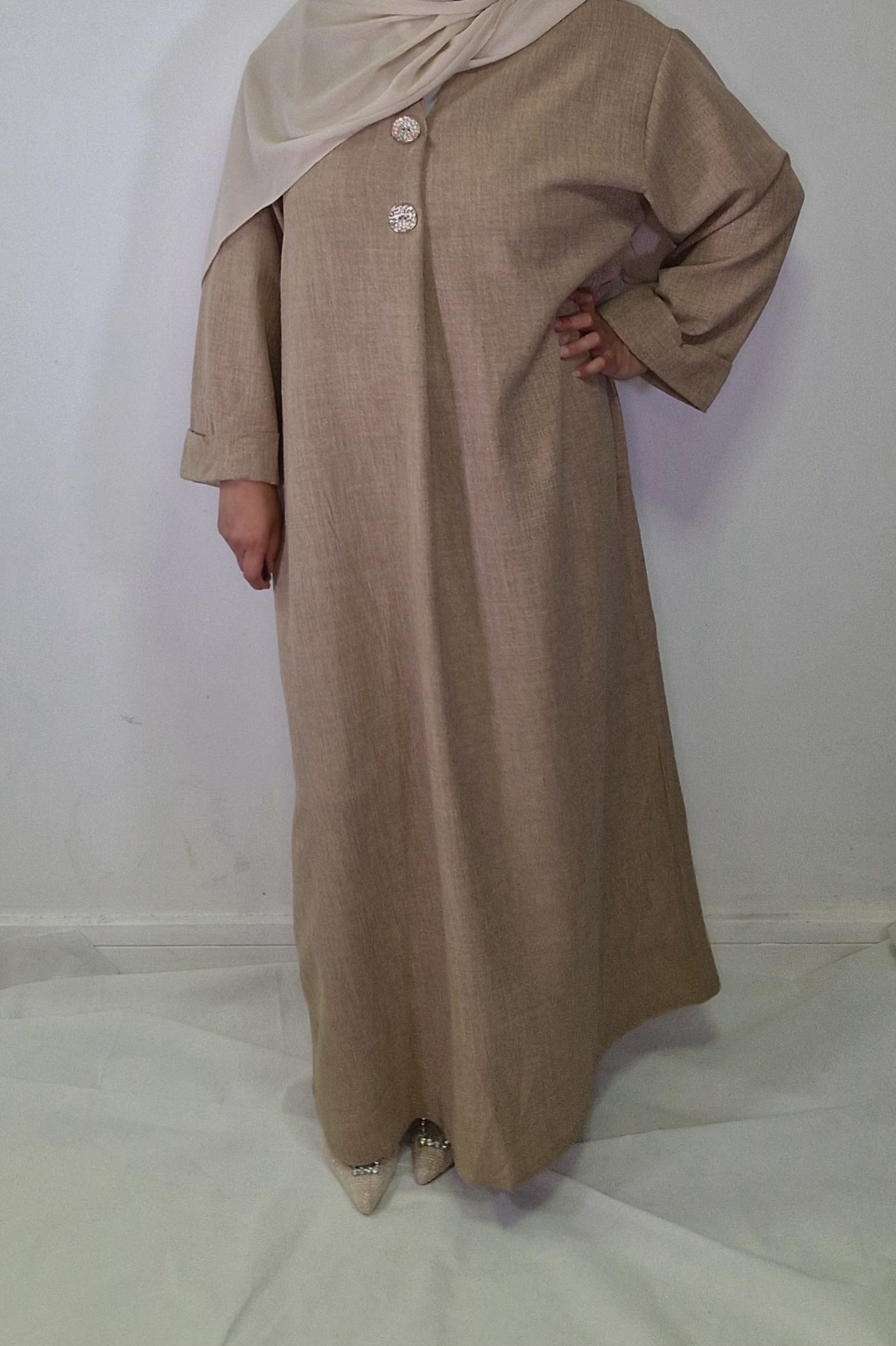 Elevate your style with our Kainat Abaya! This stunning khakhee abaya features button detailing, making it a versatile piece for any occasion. Perfect for holidays, casual wear, and even work wear, this abaya will give you an elegant and effortless look. Upgrade your wardrobe today!