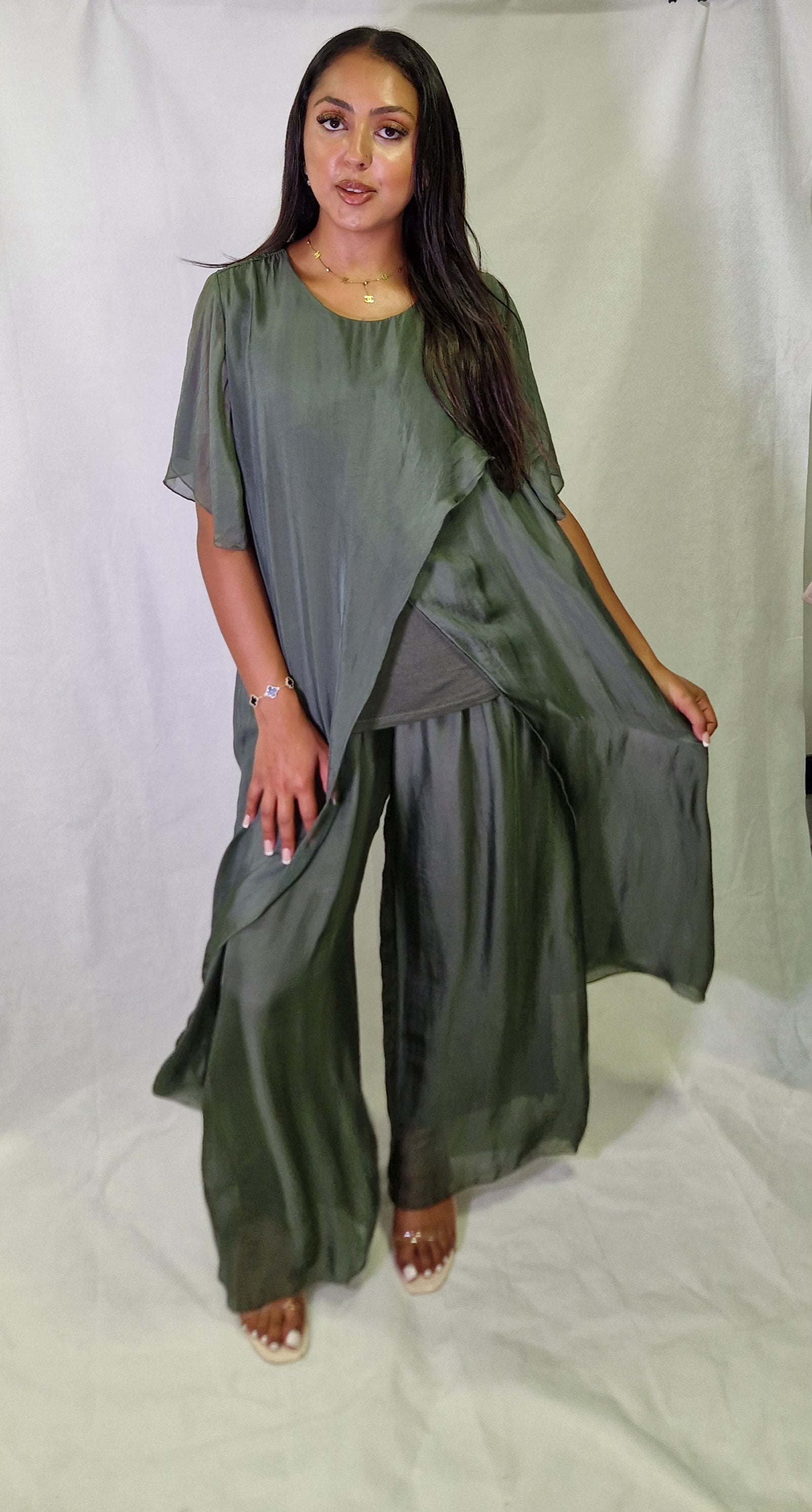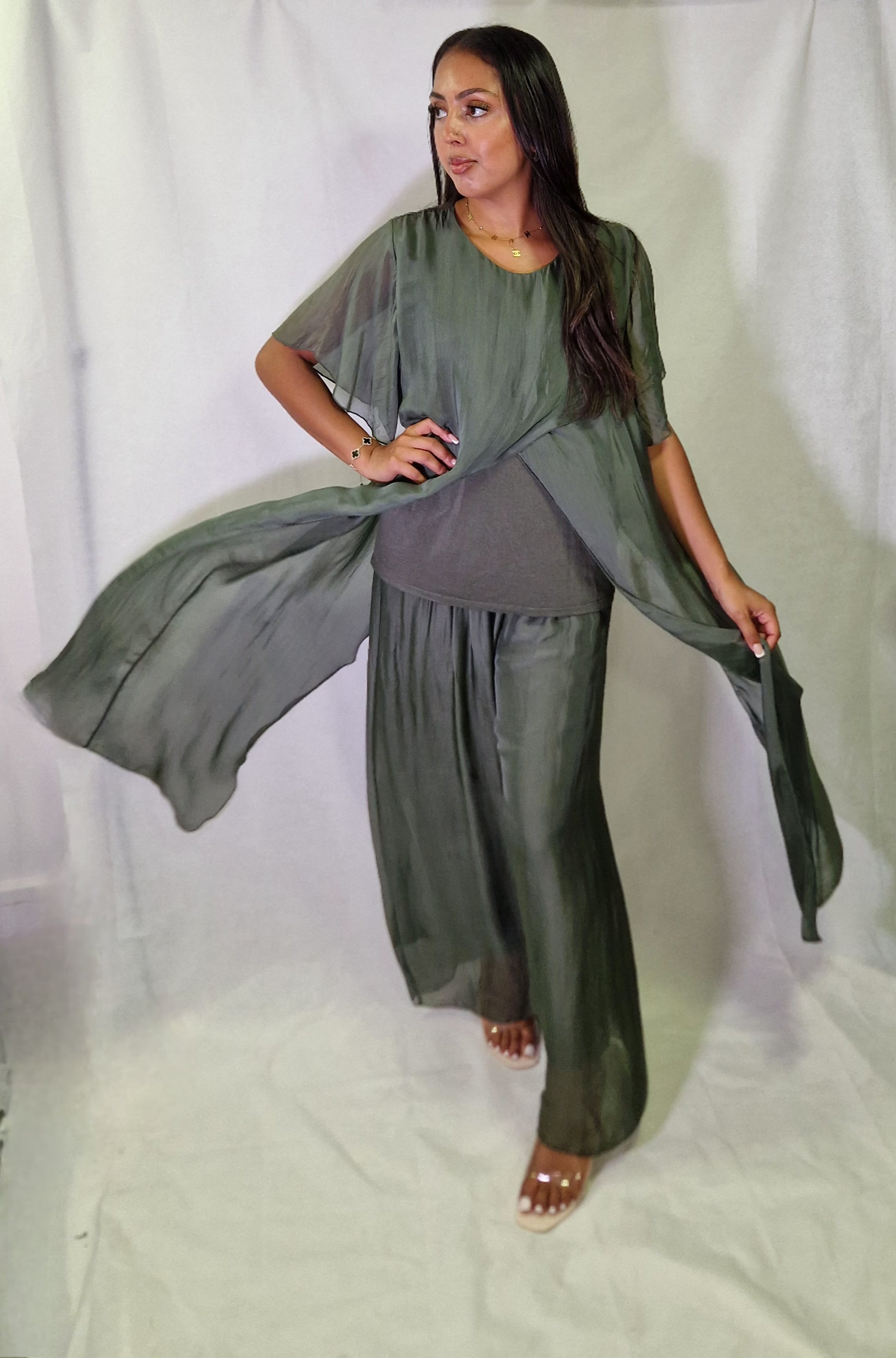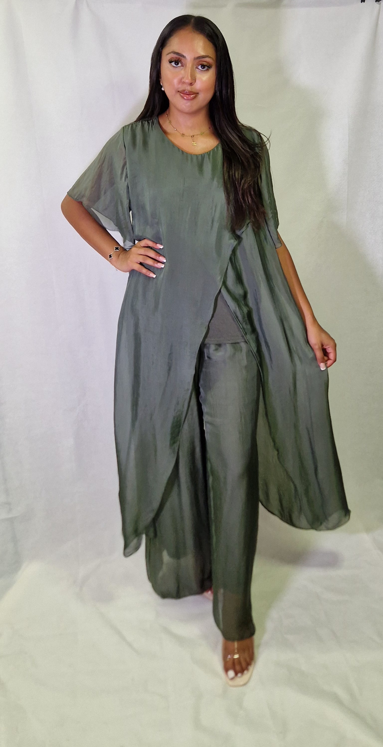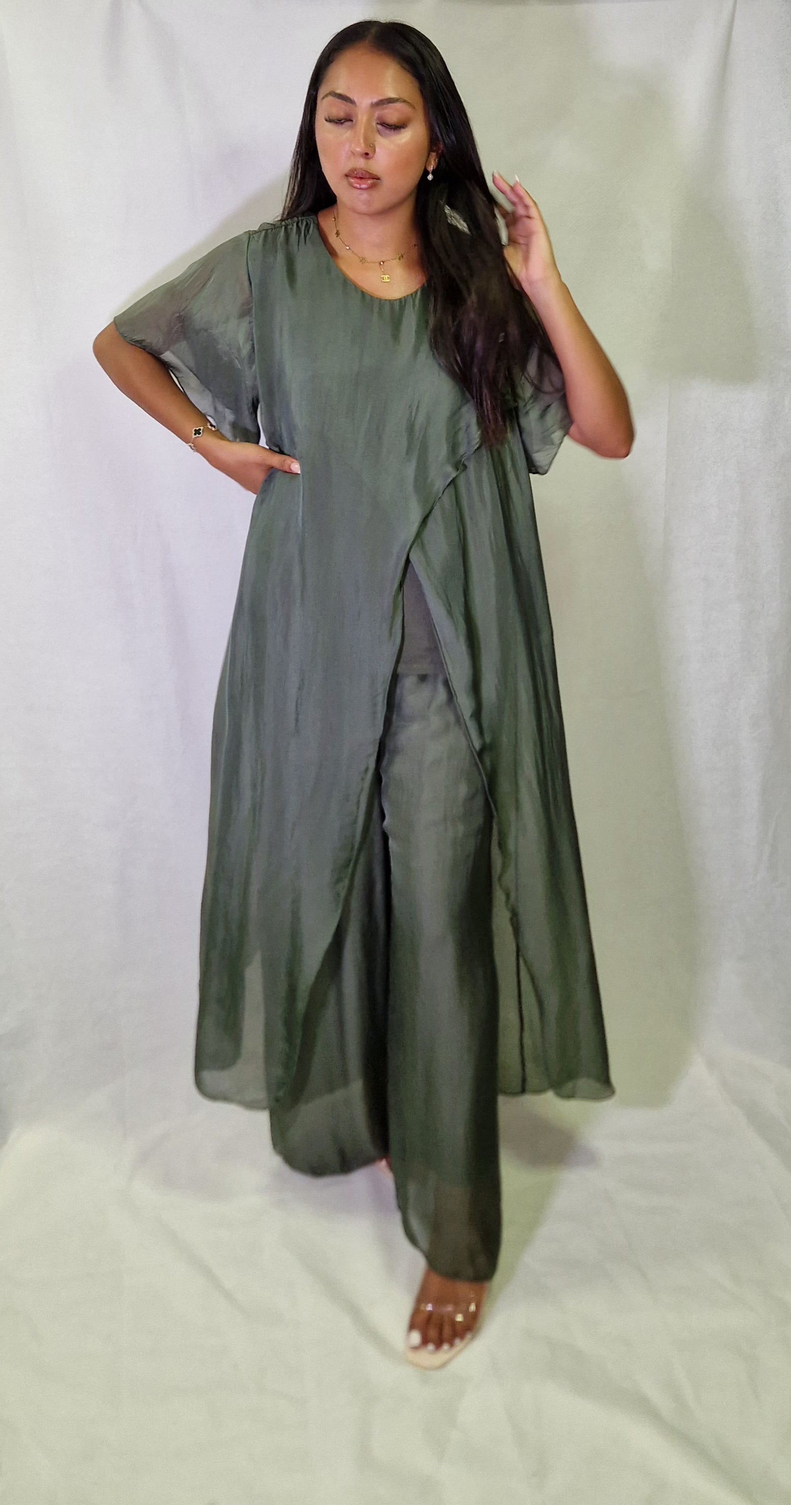 Experience the beauty and elegance of Laila, a gorgeous silk coord designed for a modest yet stylish look. Made with a fully lined flowy drape and see-through sleeves, this piece is perfect for any occasion. Elevate your style with Laila!